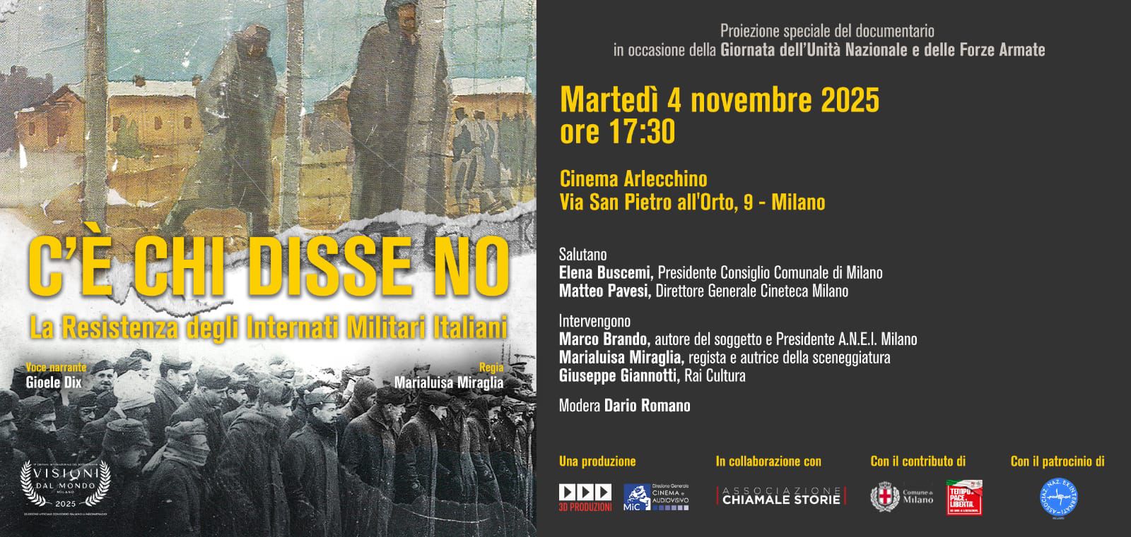 4 Novembre 2025  "C'è chi disse no - La Resistenza degli Internati Militari Italiani" Cinema Arlecchino, Via San Pietro All'orto,9 Milano
